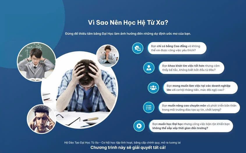 Phần giới thiệu trên nền xanh nhạt với tiêu đề "Đăng ký tuyển sinh kỳ tới - Chi tiêu có hạn!" tạo cảm giác khan hiếm. Text mô tả hệ thống LMS hiện đại, quy trình học online, cam kết bằng cấp chính quy. Số liệu cụ thể về sinh viên, tỷ lệ tốt nghiệp được highlight để tăng độ tin cậy.